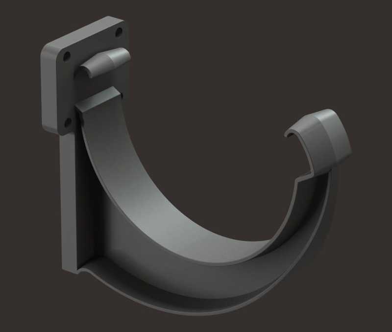 Предназначен для крепления желоба на кровлях с лобовой доской, либо в комплекте с удлинителем на кровлях без лобовой доски
