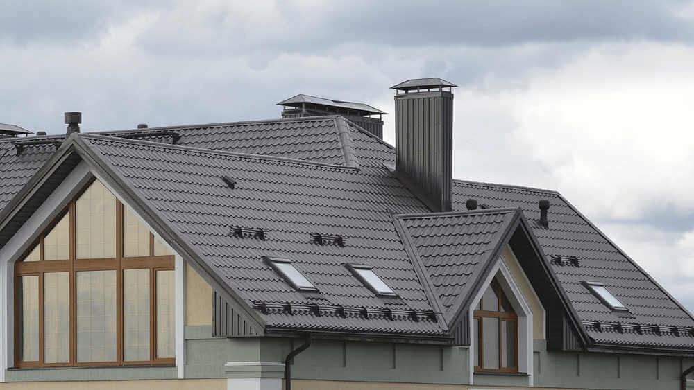 • Кровля защищена от механических воздействий, так как в основе металлочерепицы сталь толщиной 0.45 мм (с учётом металла, цинкового и полимерного слоя).